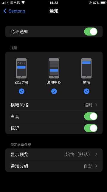 關于離線推送手機系統設置 2023年08月30日 手機系統設置要去應用管理給seetongAPP權限: 安卓手機設置: 蘋果手機設置: 上一篇: 無線小球機無線如何設置靜態IP? >下一篇: 關于離線推送手機APP,錄像機設置 返回列表