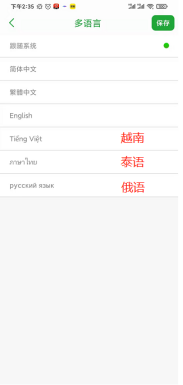 2023年10月05日1.手機APP,系統設置--多語言里面進行修改,如果是國外下載的,那么是會跟隨手機語音是改的,目前我們手機客戶端支持的語音有簡體中文、繁體中文、英文、越南語、泰語、俄語,如果沒有在這個語音里面那么默認就是英語。